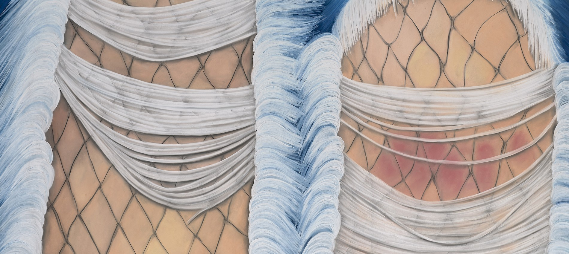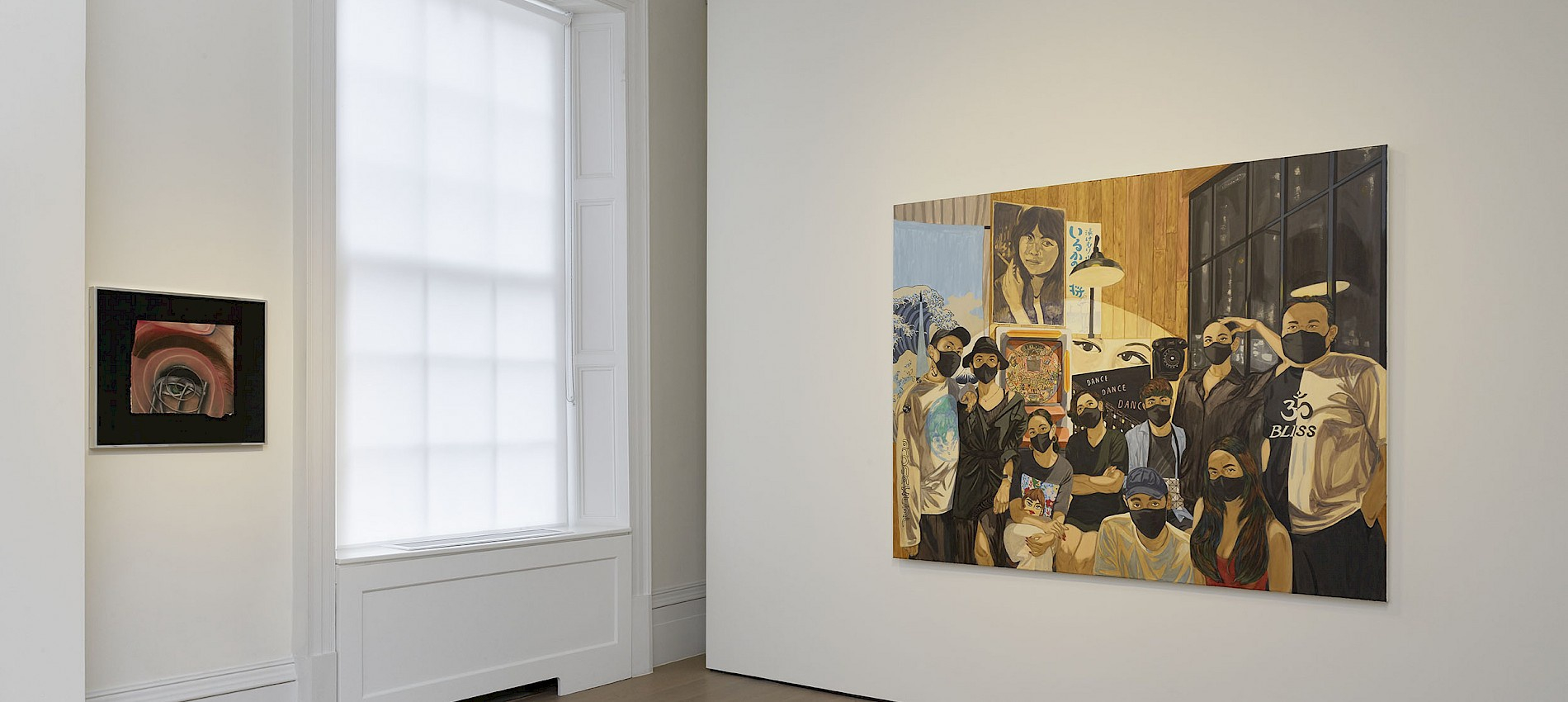 IRL explores how notions of the social and sensory experience— sensuality, togetherness and physicality— have been transformed by life lived wholly through the prism of the screen. Through textured tapestries and richly surfaced paintings, ceramic sculptures and hand-painted canvas wall hangings, many of the works in IRL are characterised by heightened materiality, which feels imbued with desire for the physicality of real-world experience. Some of the artists pay homage to lost experiences: the bonds of touch, or the hedonistic pleasure of eating and drinking among friends and family; others focus on how profoundly Internet culture has reshaped our senses, transforming the way we experience social contact, and acting as a site of memory for real-world experience and physical connection.Artists