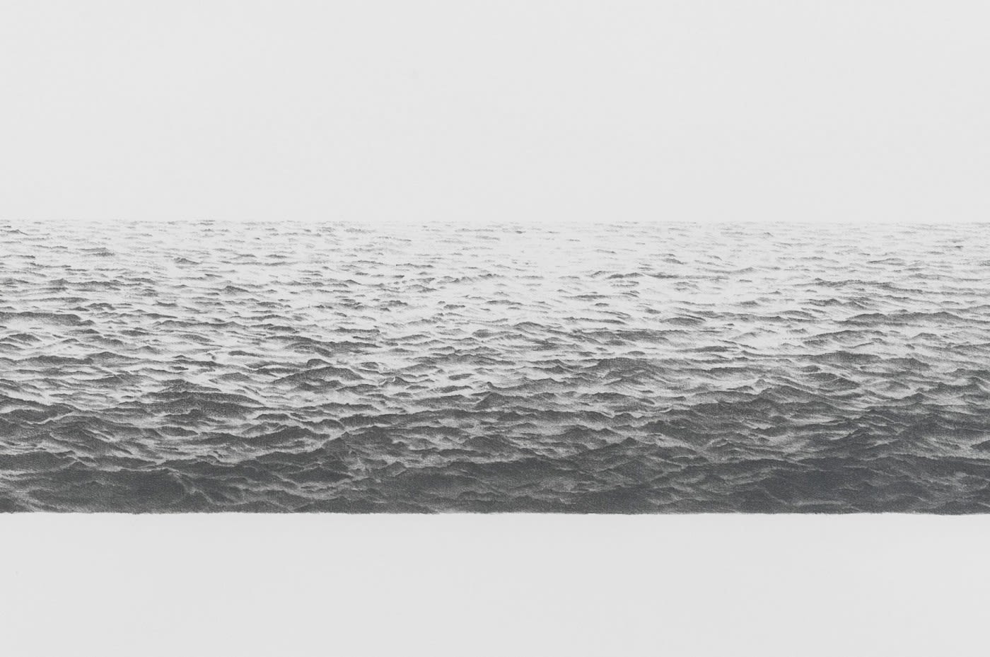 "Open sea water seen from above. Star-filled skies. Stones. Gray after gray: from the graphite of pencils, charcoal on paper and its erasure, oil paint in layer after layer of deep, smooth near-black. Forays into ochre and midnight blues, the earthen tones of sand and stone, then returning seemingly always to gray."